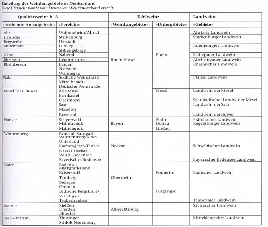 Die Anbaugebiete sind in Bereiche unterteilt, welche wiederum in Großlagen unterteilt sind. In den Großlagen sind Gruppen von Einzellagen zusammengefasst, die einen jeweils vergleichbaren Weincharakter bilden.