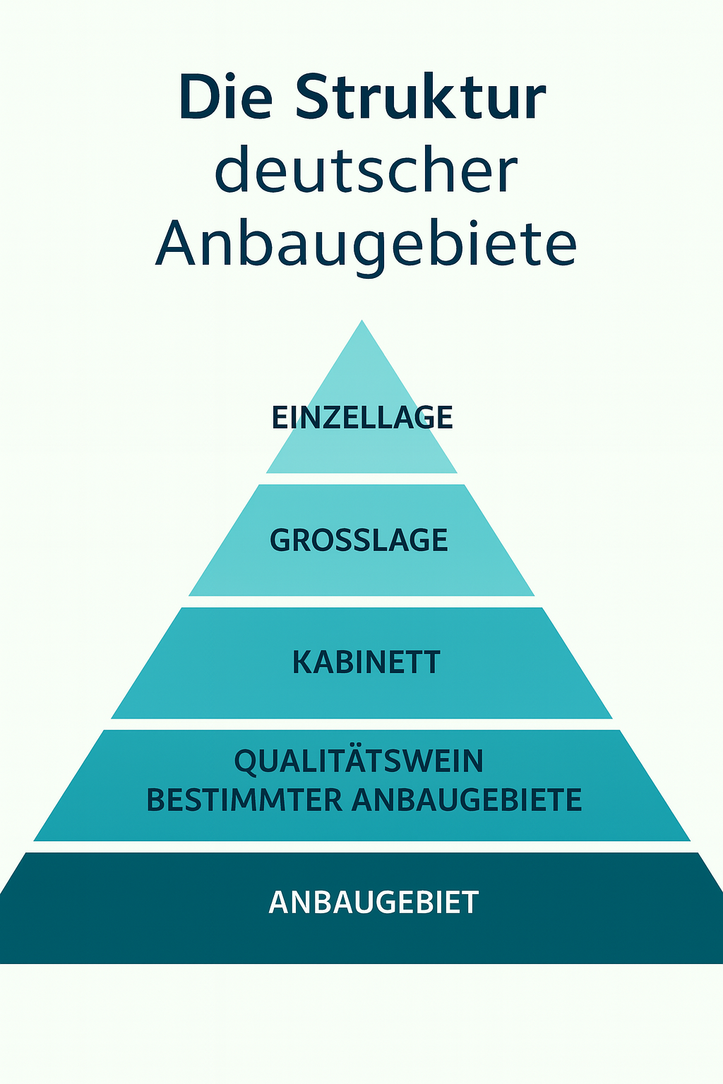 Das deutsche Weinrecht unterscheidet 2 Klassen, welche wiederum in je zwei Qualitätsstufen unterteilt sind. Jeder deutsche Wein muss mit einer dieser Qualitätsbezeichnungen deklariert werden.