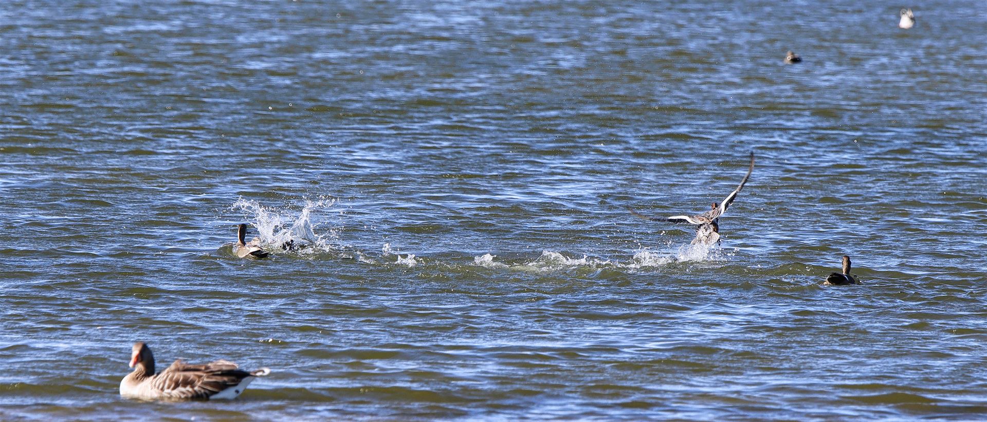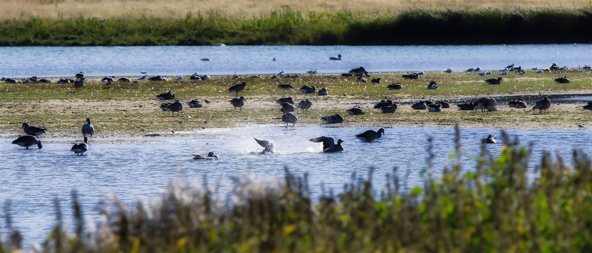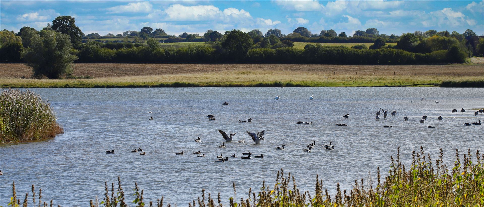 Die zwei von der Aussichtsplattform einsehbaren, etwas merkwürdig wirkenden Schwimmplattformen sind Brutflöße, die als Ersatz für zwei natürliche Brutinseln eingebracht wurden, die von Wind und Wellen so weit abgetragen wurden, dass die Gelege regelmäßig durch Hochwasser verloren gingen.