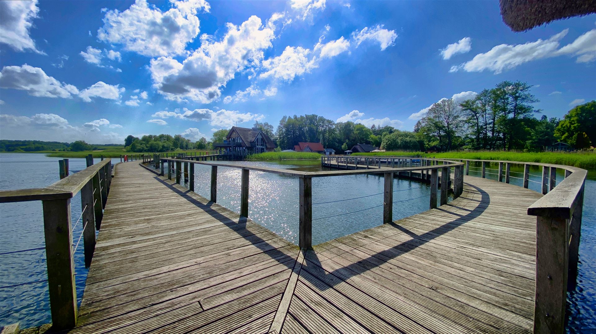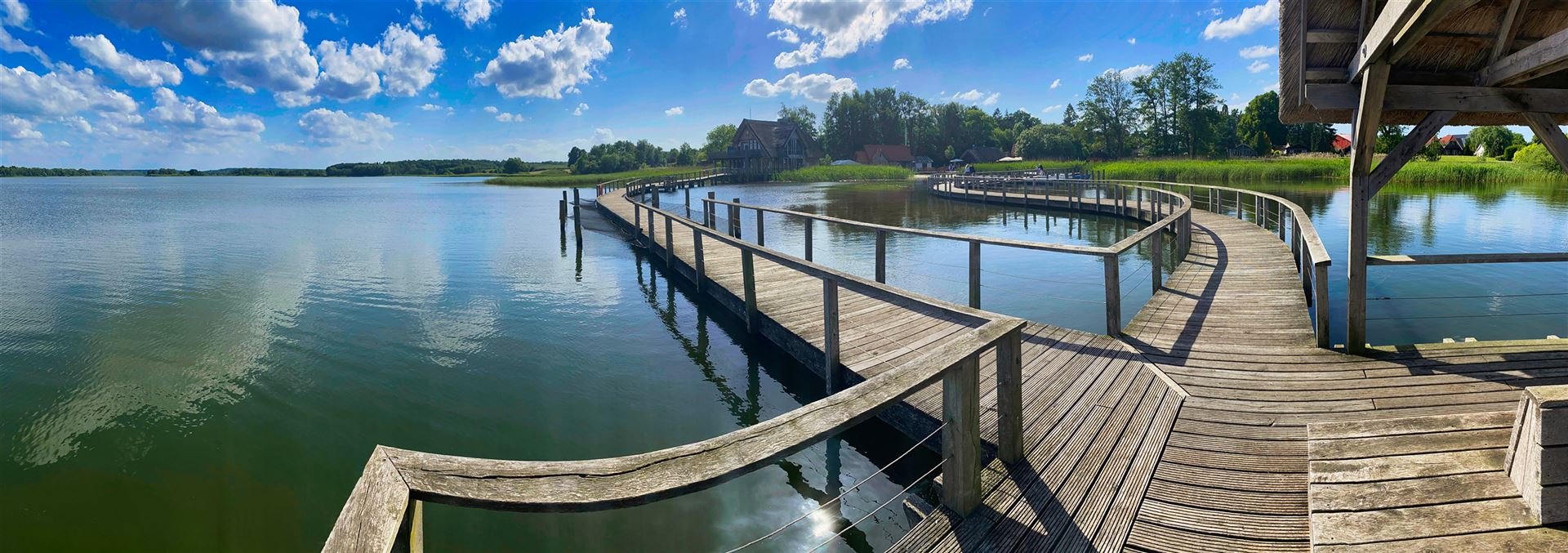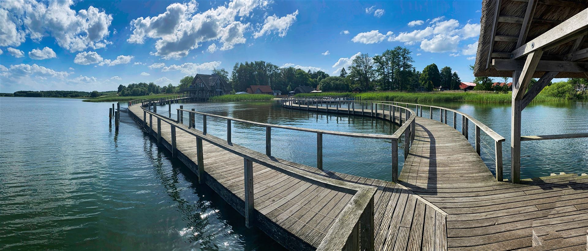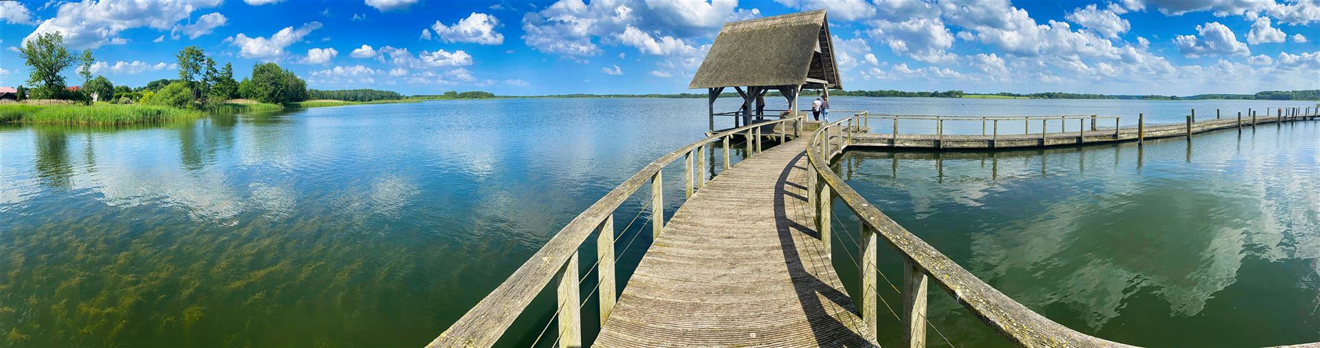 Ein romantischer, 500 Meter langer Holzsteg führt euch entlang der Uferböschung am Rande des Sees. Kleine zwischen Schilf eingebettete Rastplätze laden zur Rast ein und geben Euch Gelegenheit die tierische Artenvielfalt des Sees zu entdecken. Der malerische Steg und sowie die ihn stützenden Pfähle bestehen aus ungeschälter Eiche, um eine gewisse Langlebigkeit zu gewährleisten.