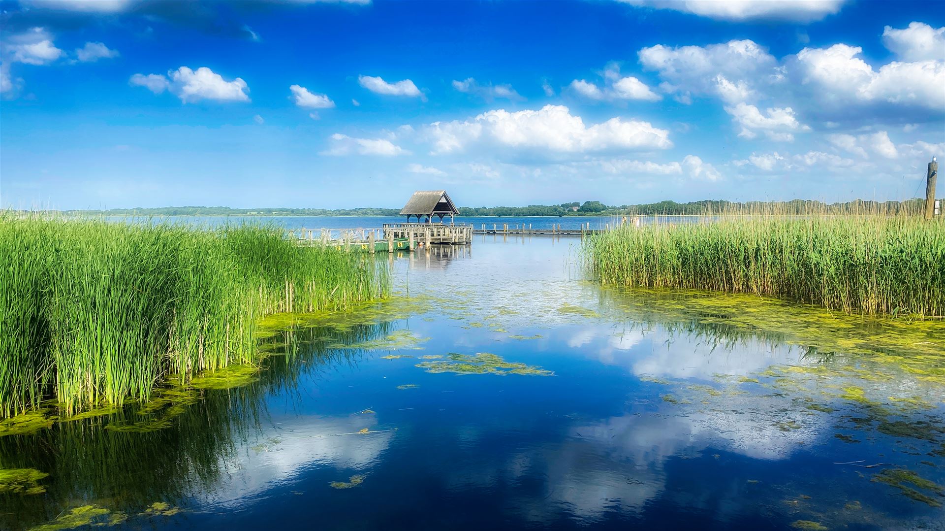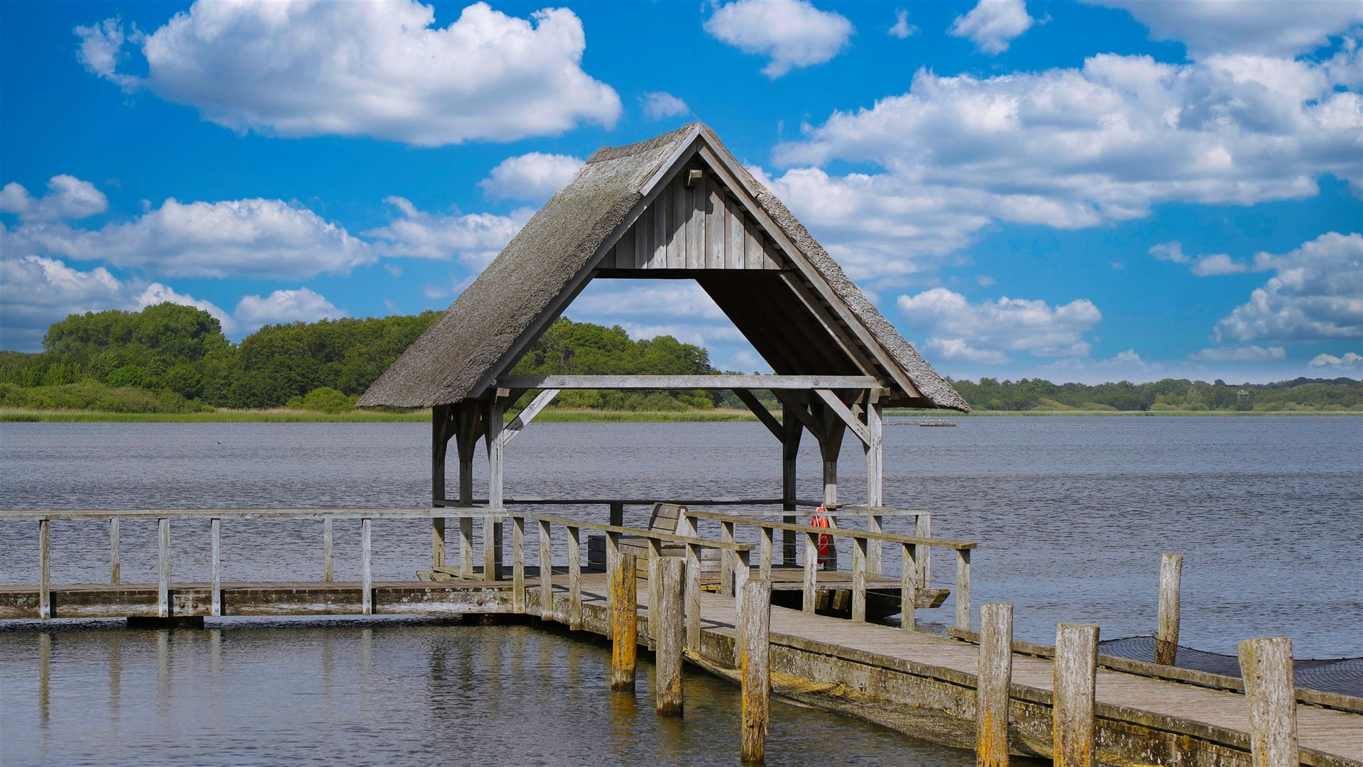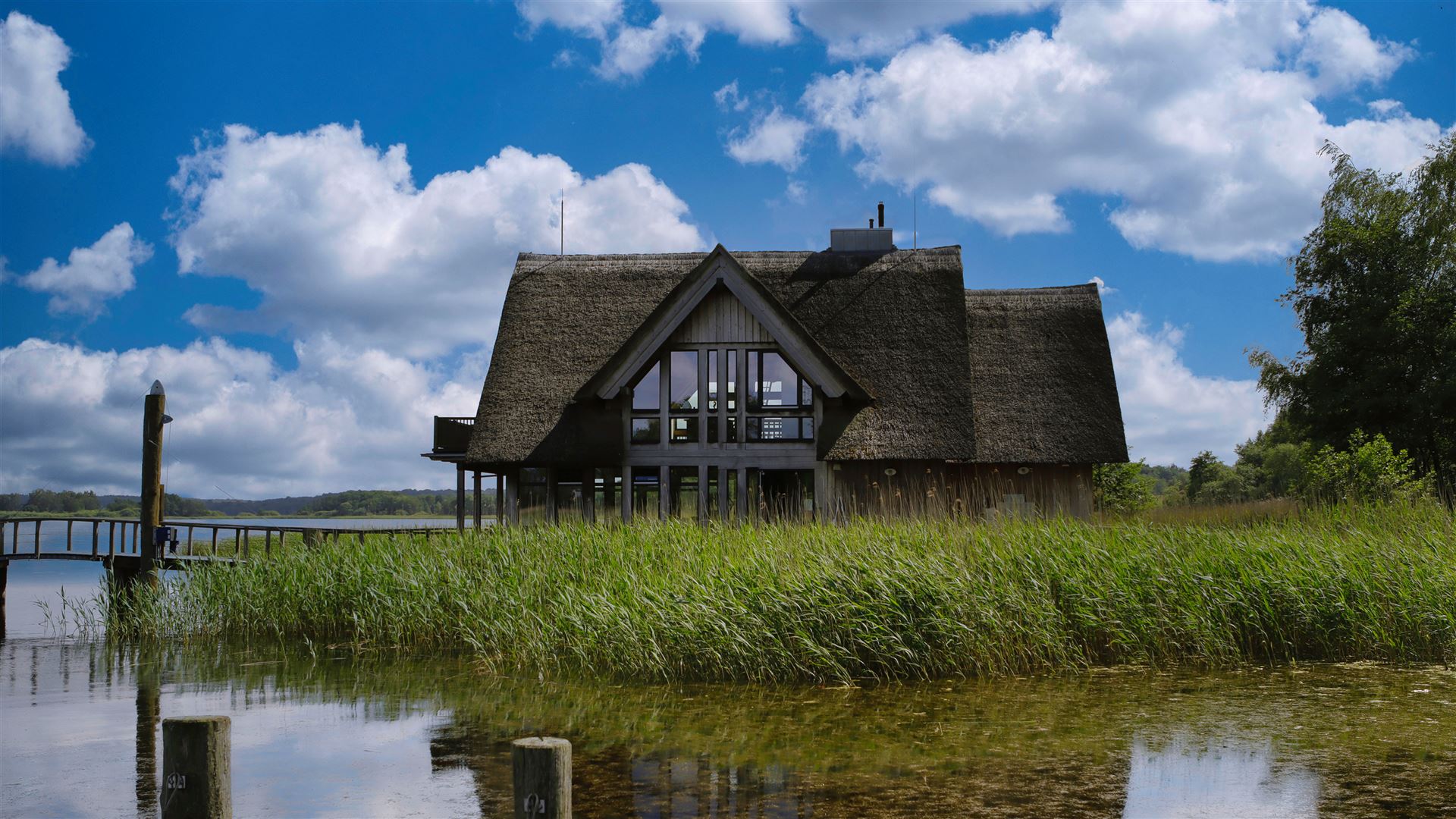 Ein romantischer, 500 Meter langer Holzsteg führt euch entlang der Uferböschung am Rande des Sees. Kleine zwischen Schilf eingebettete Rastplätze laden zur Rast ein und geben Euch Gelegenheit die tierische Artenvielfalt des Sees zu entdecken. Der malerische Steg und sowie die ihn stützenden Pfähle bestehen aus ungeschälter Eiche, um eine gewisse Langlebigkeit zu gewährleisten.