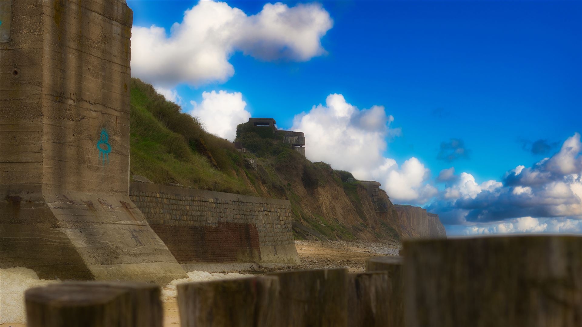 Gen Norden gefahren und dann links die Küste entlang bietet viele sehenswerte Anlaufpunkte, wie zum Beispiel das „Dover Patrol Monument“. Ein Denkmal für ein britisches Royal-Navy-Kommando aus dem Ersten Weltkrieg über den Dächern von Sangatte. Das Team der Royal Navy sollte das Eindringen deutscher Seestreitkräfte und U-Boote in den Ärmelkanal verhindern. Es liegt auf einer Anhöhe oberhalb des Ortes Sangatte, direkt am Cap Blanc-Nez.