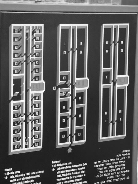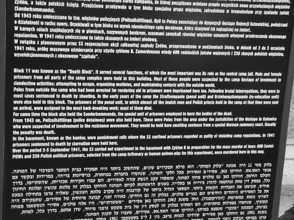 Zwischen den Blöcken 11 und 10 wurde eine Mauer errichtet, die Schwarze Wand, an der Häftlinge hingerichtet wurden. Sie mussten sich zuvor ausziehen, dann wurden Häftlingsnummer, Namen und Geburtsdatum aufgeschrieben und die SS-Männer schossen ihnen in den Hinterkopf.