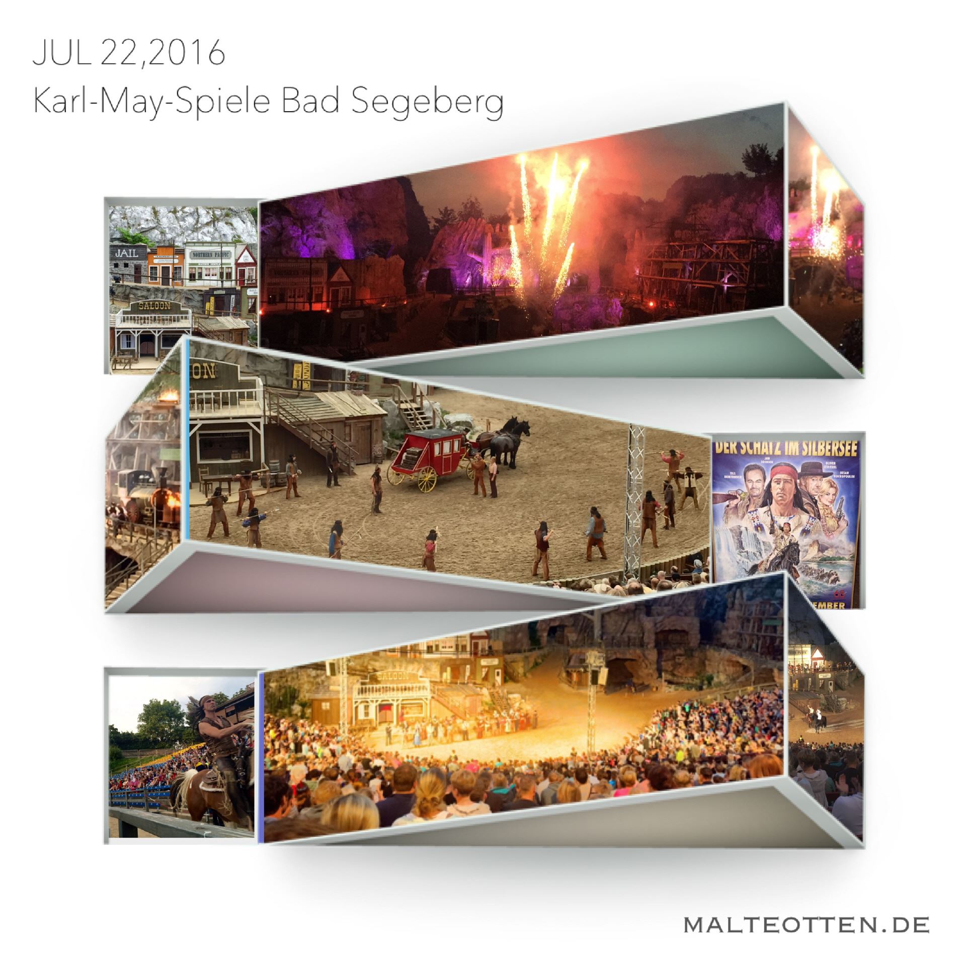 Voller Hingabe und mit großem Talent präsentieren namhafte und weniger namhafte Schauspieler mit vollem Körpereinsatz, jeder Menge Spannung, Stunts und Pyrotechnik die Abenteuerromane von Karl May. ...z.B. „Der Schatz im Silbersee 2016“ - Jan Sosniok „Winnetou“ - Till Demtrøder „Old Shatterhand“ - Susan Sideropoulos „Ellen Patterson“ - Oliver Stritzel „Cornel Brinkley“ - Nicolas König „Ovuts-Avaht, der Große Wolf“ - Peter Nottmeier „Lord Castlepool“ - Joshy Peters „Missouri-Blenter“ ... und vielen mehr...