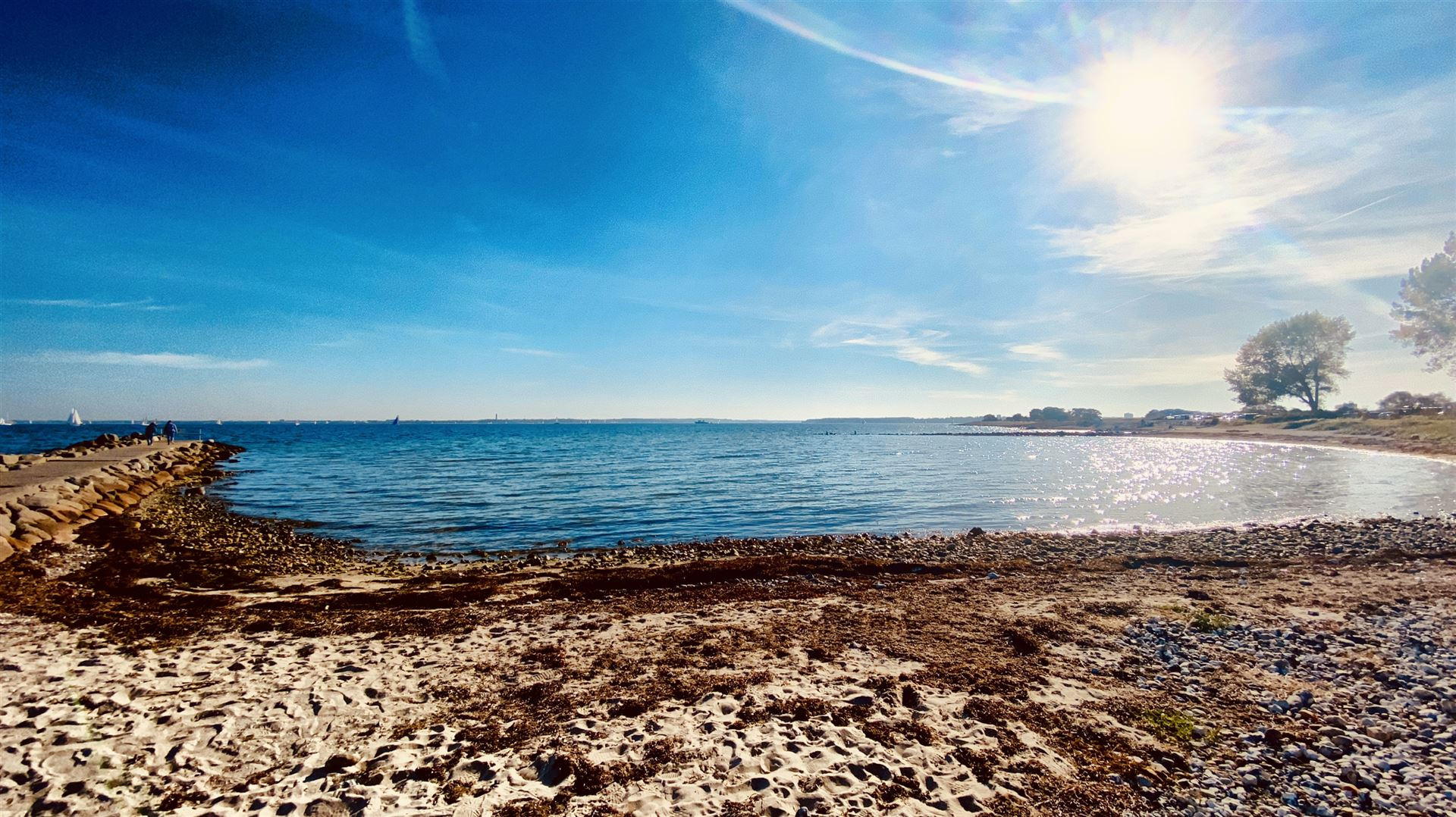 Surfer und andere Wassersportler genießen ihre Zeit auf dem Wasser und man fragt sich, ob die Temperatur der Ostsee es wirklich zum Spaß machen kann. Ein Stand-Up-Paddler begleitet uns fast über den gesamten Weg in T-Shirt und kurzer Hose - scheint also entweder ein "harter Hund" zu sein oder die Ostsee ist noch wärmer als Gedacht.