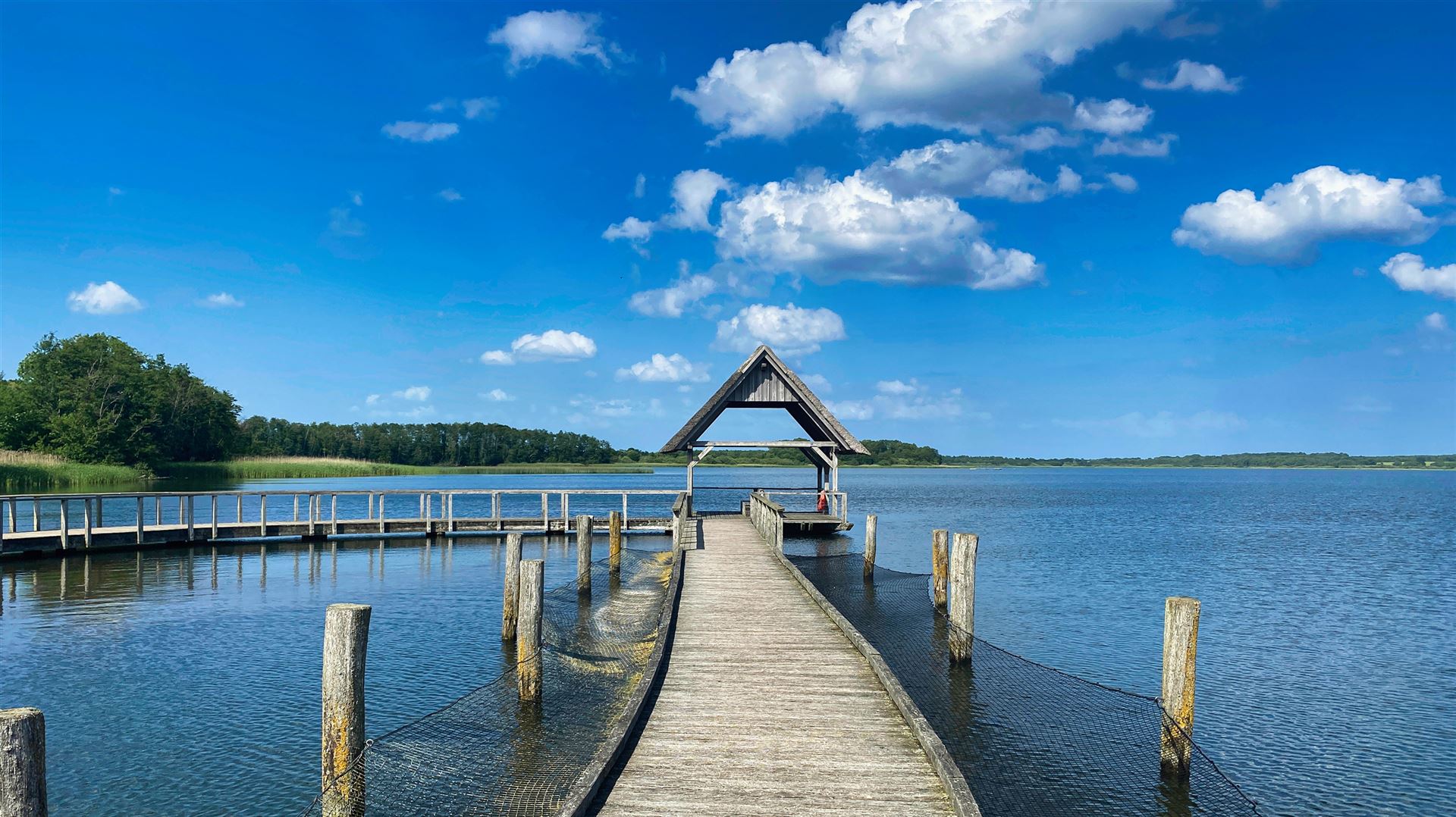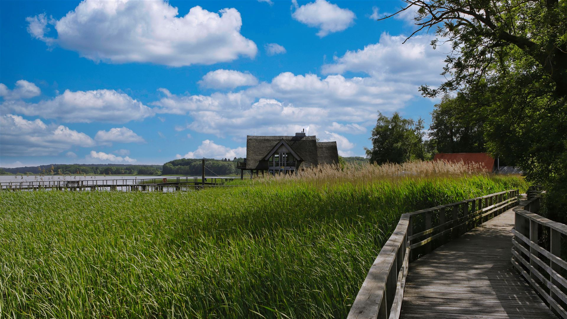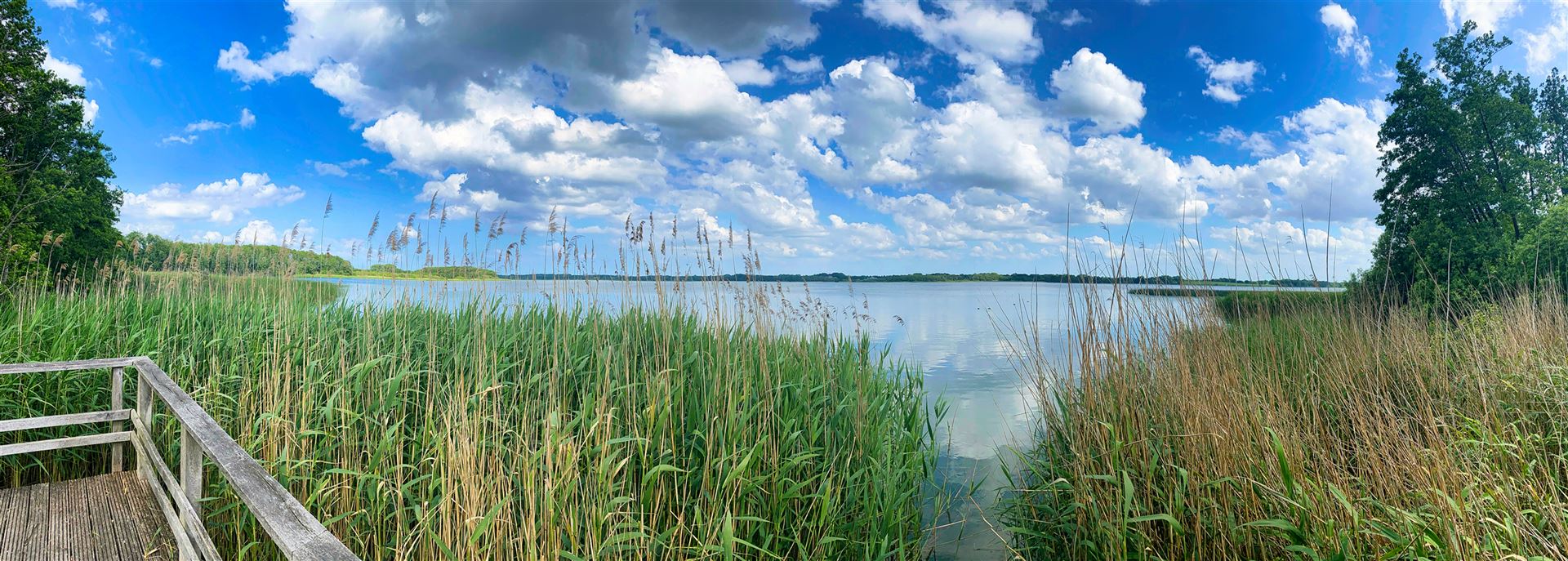 Ein romantischer, 500 Meter langer Holzsteg führt euch entlang der Uferböschung am Rande des Sees. Kleine zwischen Schilf eingebettete Rastplätze laden zur Rast ein und geben Euch Gelegenheit die tierische Artenvielfalt des Sees zu entdecken. Der malerische Steg und sowie die ihn stützenden Pfähle bestehen aus ungeschälter Eiche, um eine gewisse Langlebigkeit zu gewährleisten.